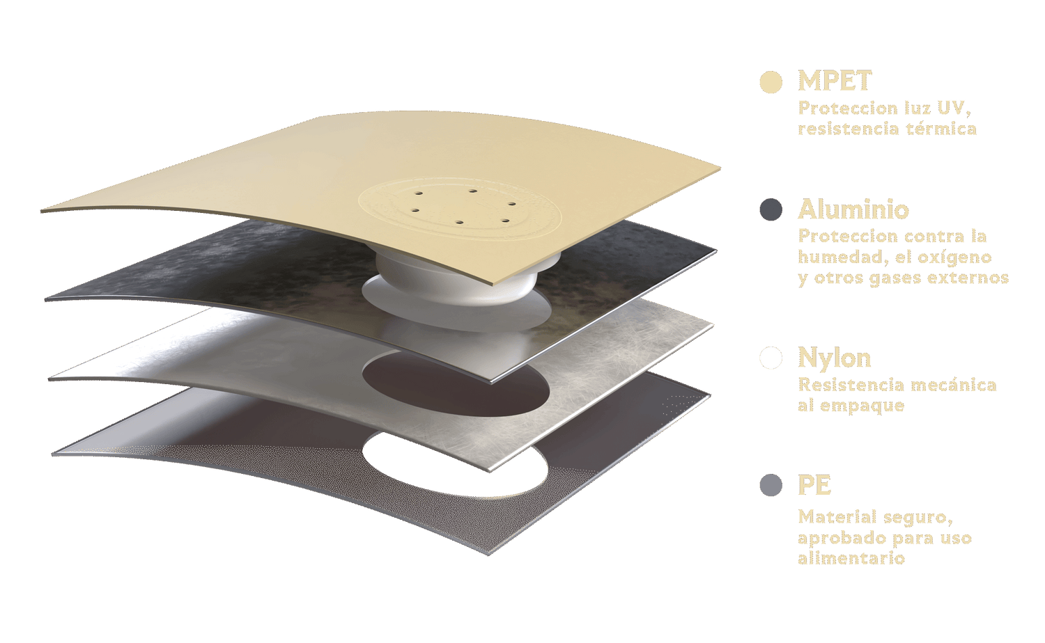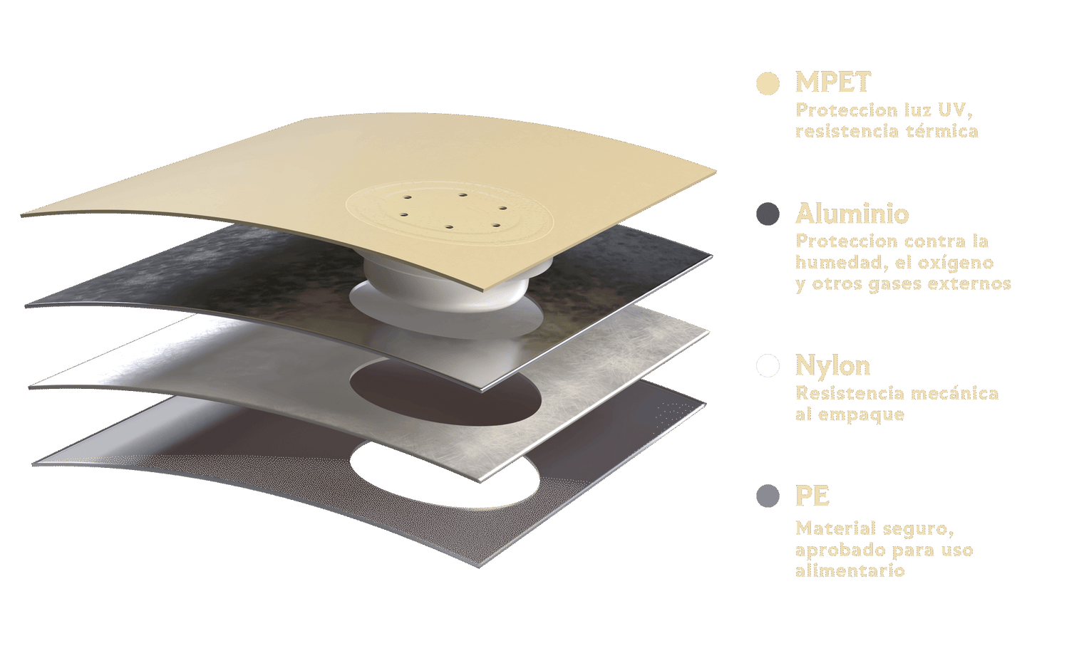 Diseñado con una barrera multicapa que bloquea la humedad, la luz y el oxígeno, preservando la frescura y valor nutricional del alimento.